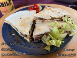 Recipe by Denver Green Chili at https://denvergreenchili.com/recipes/appetizers/cranberry-sausage-quesadillas/