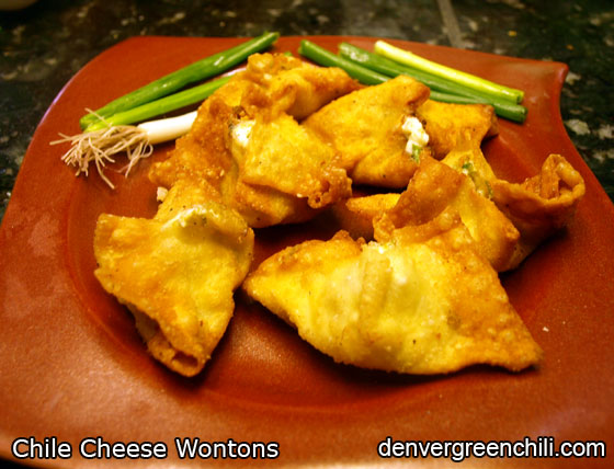 Recipe by Denver Green Chili at https://denvergreenchili.com/recipes/appetizers/chile-cheese-wontons/