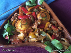 I like to cook with pesto a lot - quick way to get exceptional flavor, and it always goes well with chiles. This is the kind of recipe I use as a guideline rather than sticking to exactly.