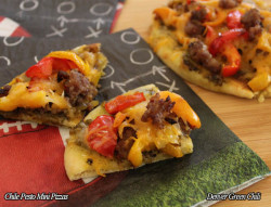 I think this is ideal for any Super Bowl party. You can give each person his own pizza or cut it into quarters (I recommend using a pizza cutter) for 2-bite sized servings. Got any suggested variations? Send them to me at anita@denvergreenchili.com, ok?