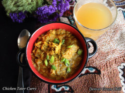 This is essentially a very classic chicken soup foundation chock full of vegetables, pureed into a very thick soup/stew, and spiced up with green chiles and curry powder into a very robust, flavorful complete meal in a bowl. Personally, I found this to be an incredibly satisfying meal all by itself. It's too thick to be called a soup and too thin to serve on a plate. You can serve it over rice - that's what many would do - or just in a bowl by itself as I did.