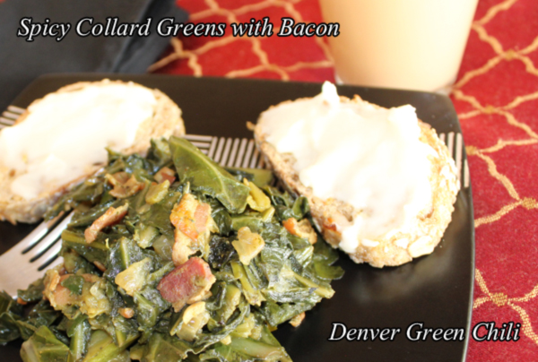 Collard greens? What? You didn't expect collard greens? Well.... I grew up in Virginia, and believe me I know what good collard greens taste like. Many Virginia restaurants (and most bbq joints) have collard greens on the menu. They are usually very good. You need to cook them well (ie, thoroughly) and season them well. But, of course, in the South they don't add green chiles - which add a special touch. I can eat these as a whole meal.