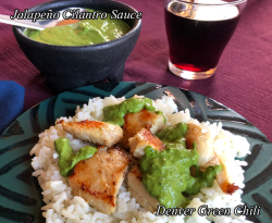 This has got to be one of my all-time favorite recipes. I think it's spectacular. It's actually a copycat recipe. In March I was in San Diego and visited a middle eastern place called The Kabob Shop. They had a jalapeño cilantro sauce that was amazing. I was ordering their chicken kabobs and smothering them with this sauce. Their other sauces were also excellent. I asked an employee what the ingredients were and he said, "jalapeños, cilantro, and olive oil." The next time I went there, I asked another employee, and she said,"We get fired if we give away any of our recipes." Well, I knew there had to be more than 3 ingredients. I took several tubs of it back to Denver so I could try to recreate it.